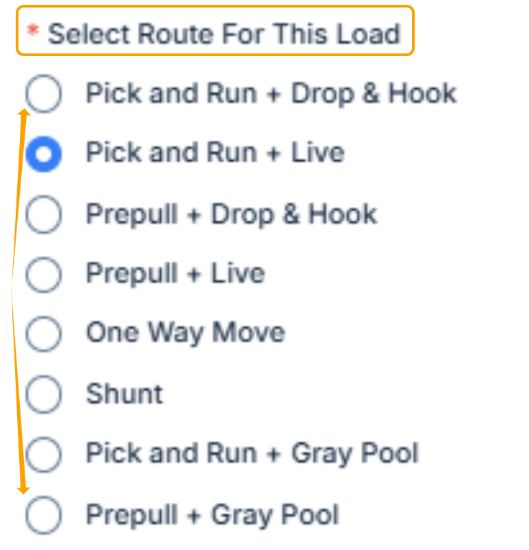 The only container move in this template starts at a pickup location and assumes that the next move is to the delivery or return location depending on whether you have chosen a container (import or export) move or a road move. This move type is typically used for a yard to yard move intra yard move