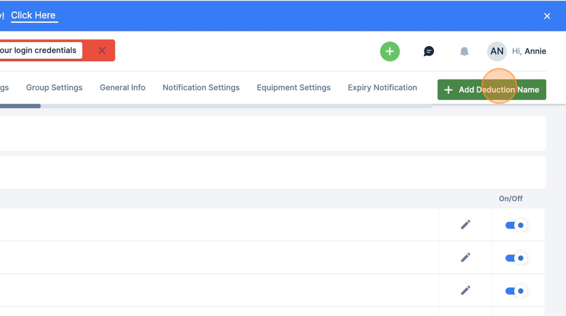 11. Under Deduction Name, select the deduction from the drop-down menu