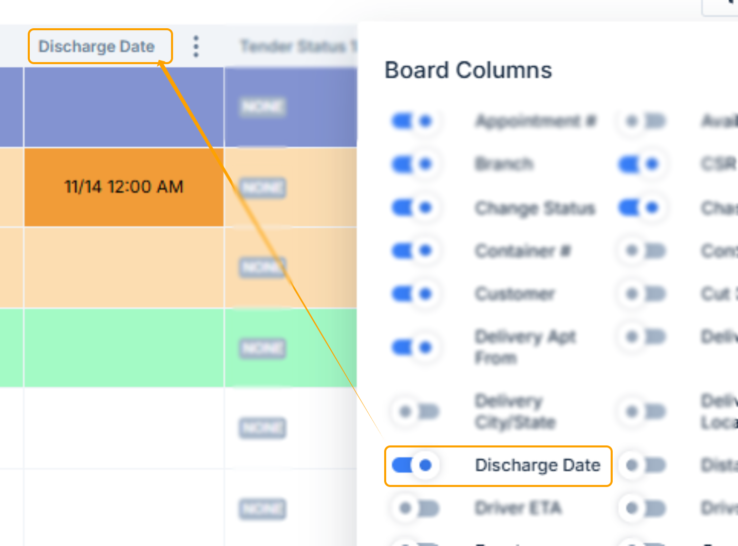 - Discharge Date added to the Dispatcher Toggle on in Columns list (toggle on/off)